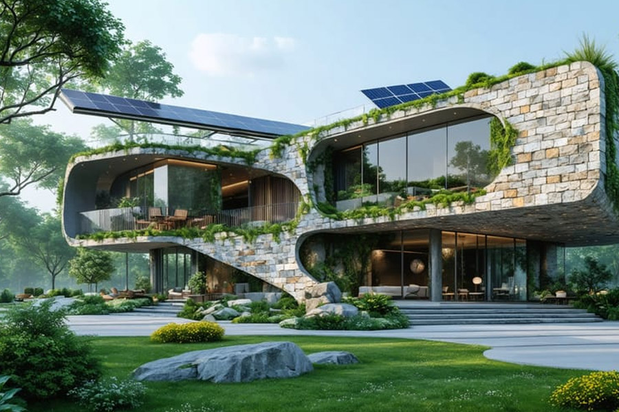 A sustainable building encourages art. Alignment creates beauty—stone that melts into soil, walkways that follow the land’s pulse, and patios bordered by vegetation rather than concrete.