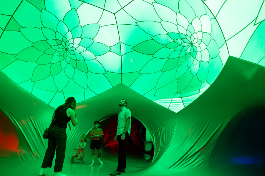 Inflatables are essential to generating sensory-rich interactive spaces. Modern models use lighting, sound, and projection to engage viewers.