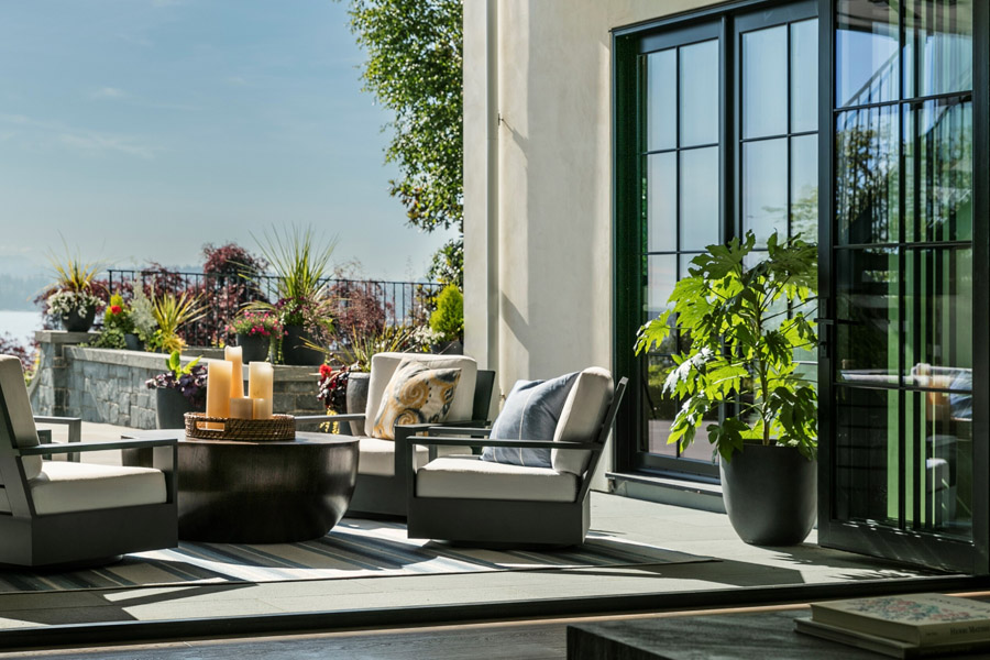 Use proportionate design—two-thirds planting to one-third hard surface works in most home settings. Your materials and colors should match your home’s exterior and garden.